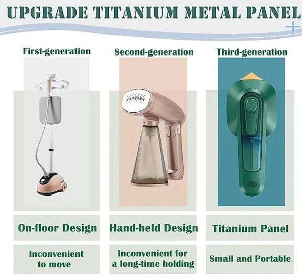 Upgraded Titanium Metal Panel: The steam iron for clothes uses a large titanium panel, irons at a constant temperature of 150?, quickly preheats, and irons smoothly. It can easily penetrate every fiber in the clothes so that the clothes can quickly recover as new, even the precious fabrics can be carefully taken care of without damaging the clothes.